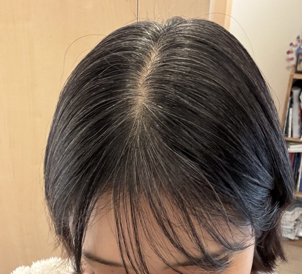 やっぱり前髪と頭頂部をはじめ、髪の表面(一番目立つところー!)に白髪が多いなと実感しました。