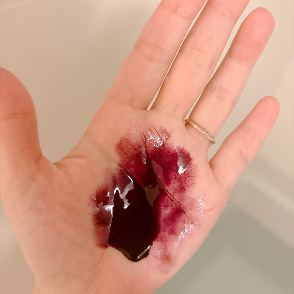 流してみると見た目の割には色づきが強くなくて、白髪はほんのりピンクになりました。